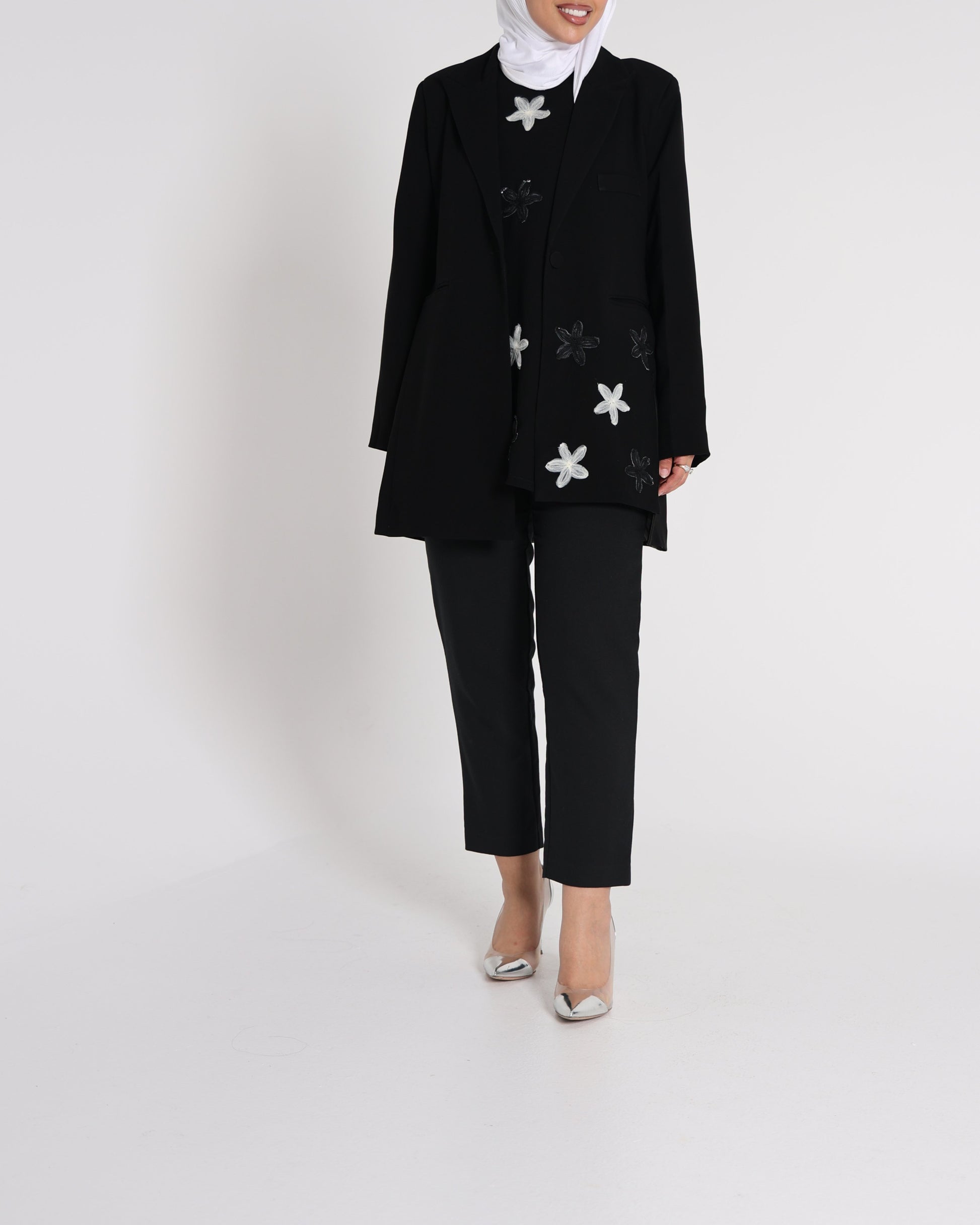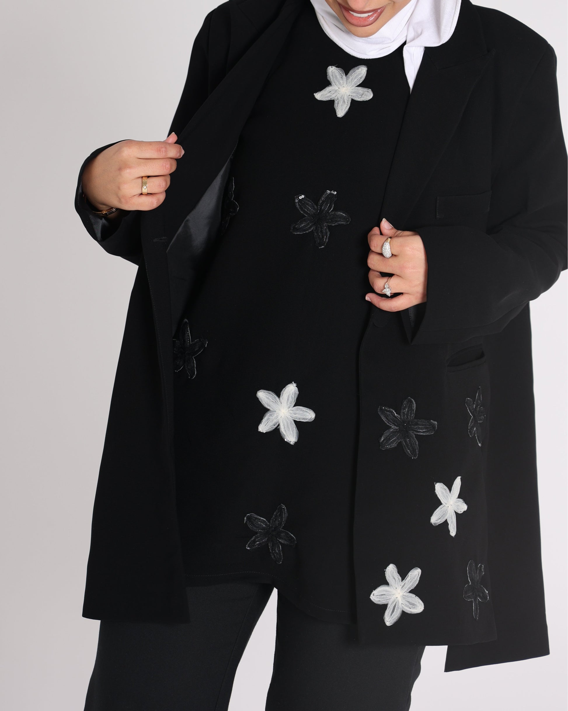 This classic black and white jacket features a timeless inside top design, combining style and comfort for everyday wear. Its versatile look makes it an essential addition to any wardrobe.