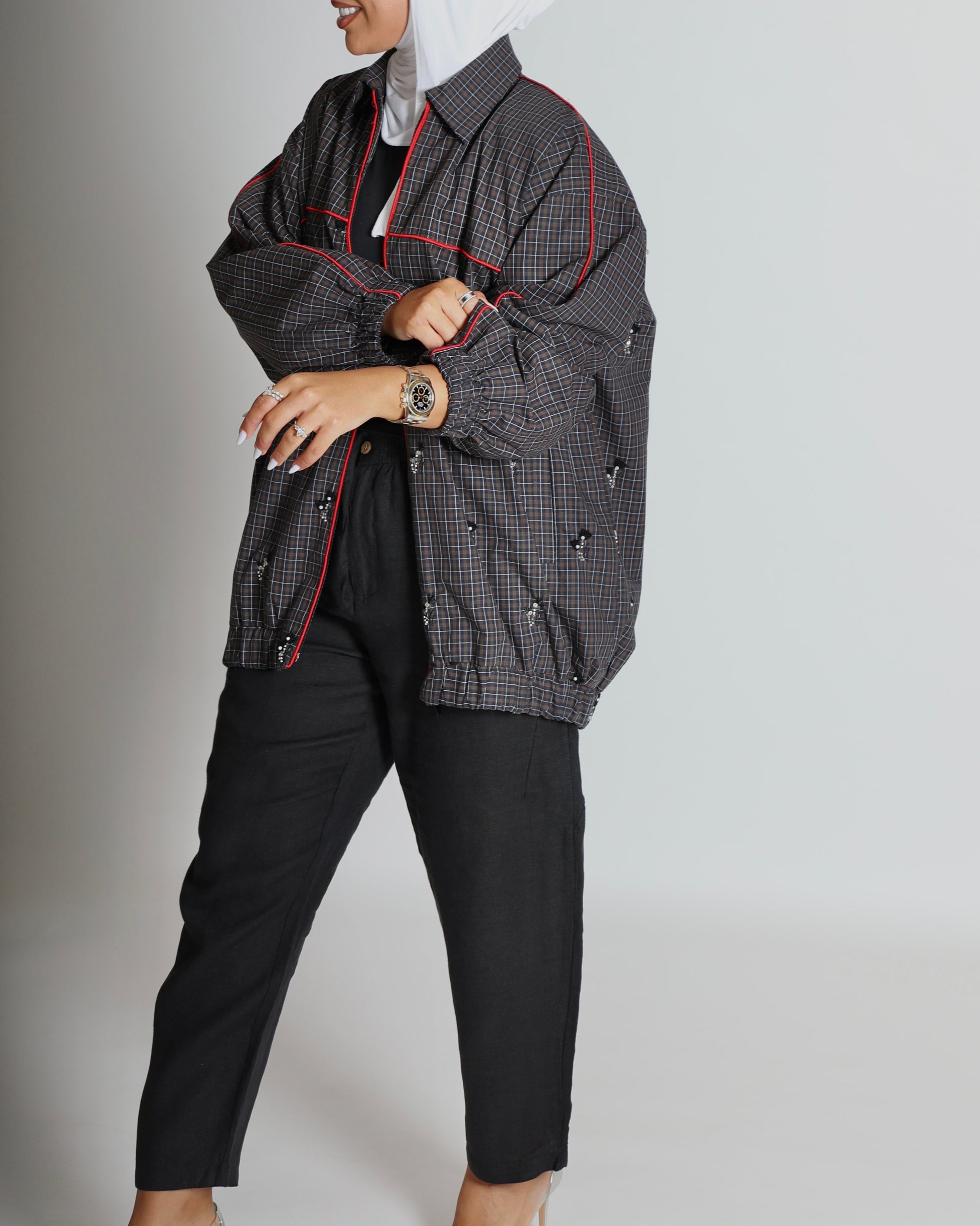 BOLD GRID Jacket offers a versatile free size design, making it an ideal choice for a wide range of body types. Featuring intricate embroidery, this best-selling piece combines elegance with comfort, perfect for enhancing your wardrobe with a standout, refined look. Crafted to deliver both style and ease, it is a reliable addition for those seeking quality and sophistication in everyday outerwear.