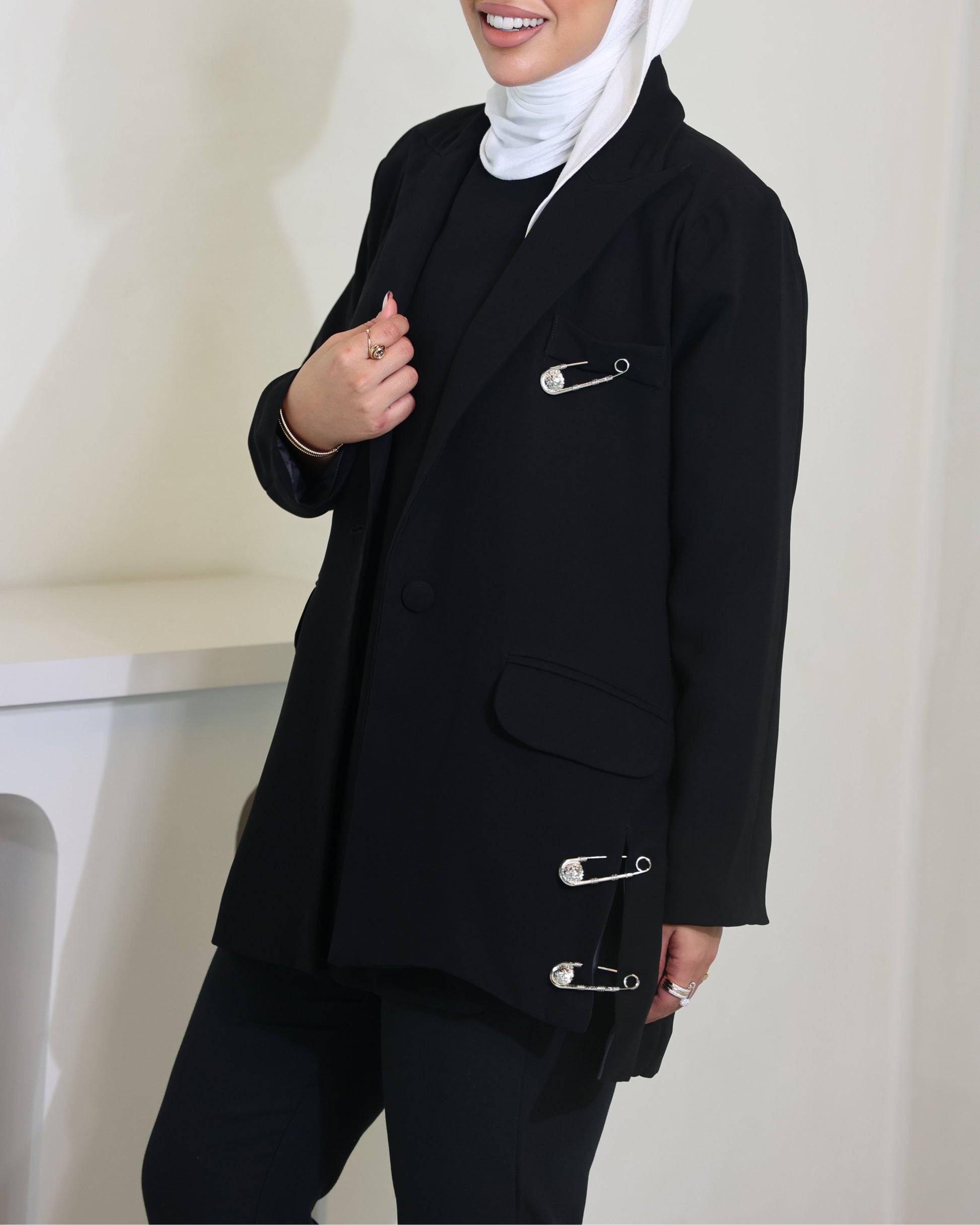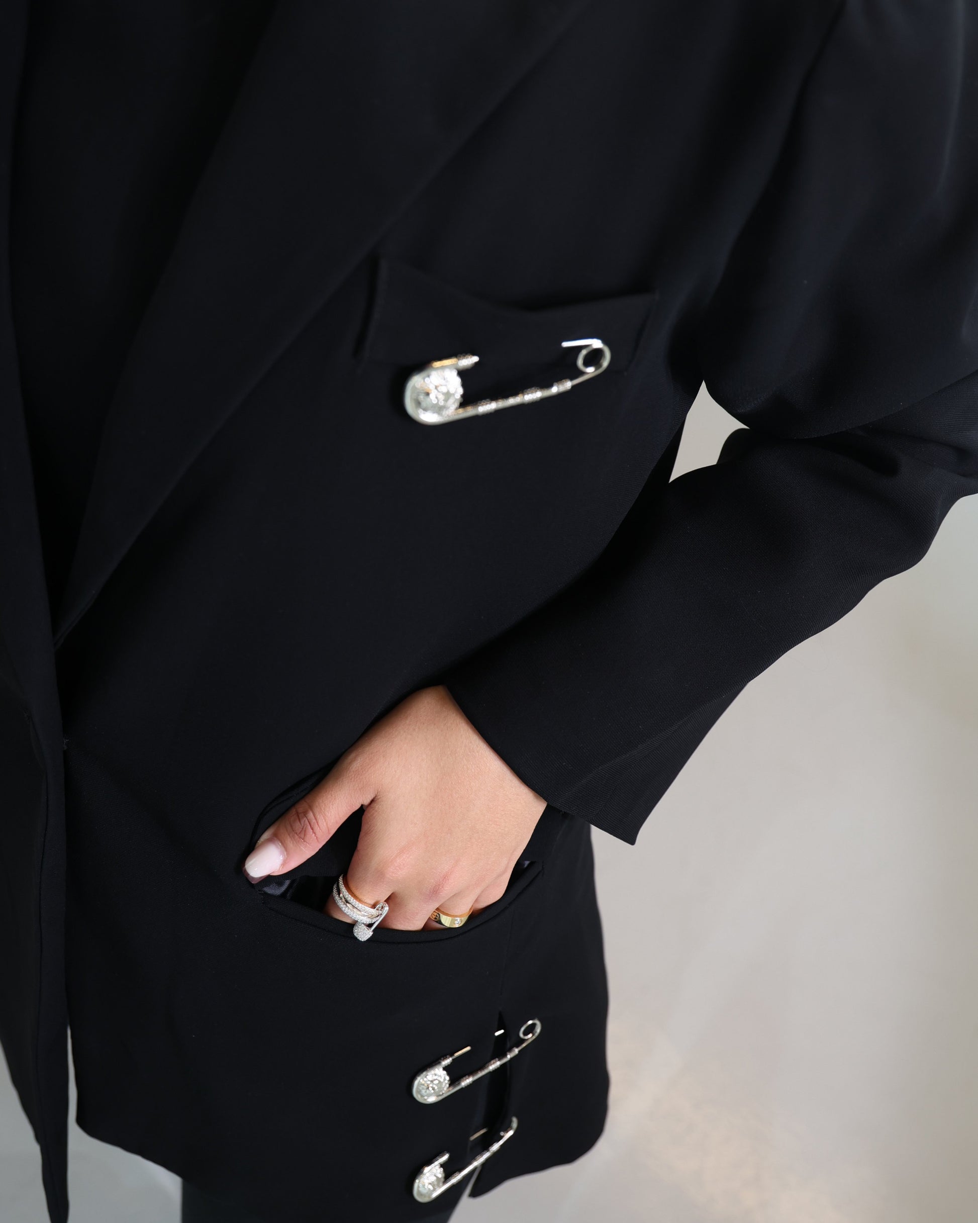 This black classic jacket in crepe fabric offers timeless style and versatile elegance, perfect for any occasion. Its sleek design ensures a polished look that never goes out of fashion.